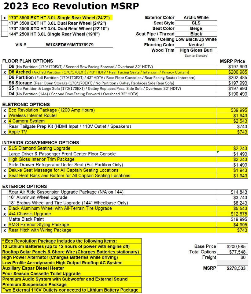 This 2023 Vehicle is manufactured in 2021 Mercedes-Benz Sprinter 4x4 Chassis.